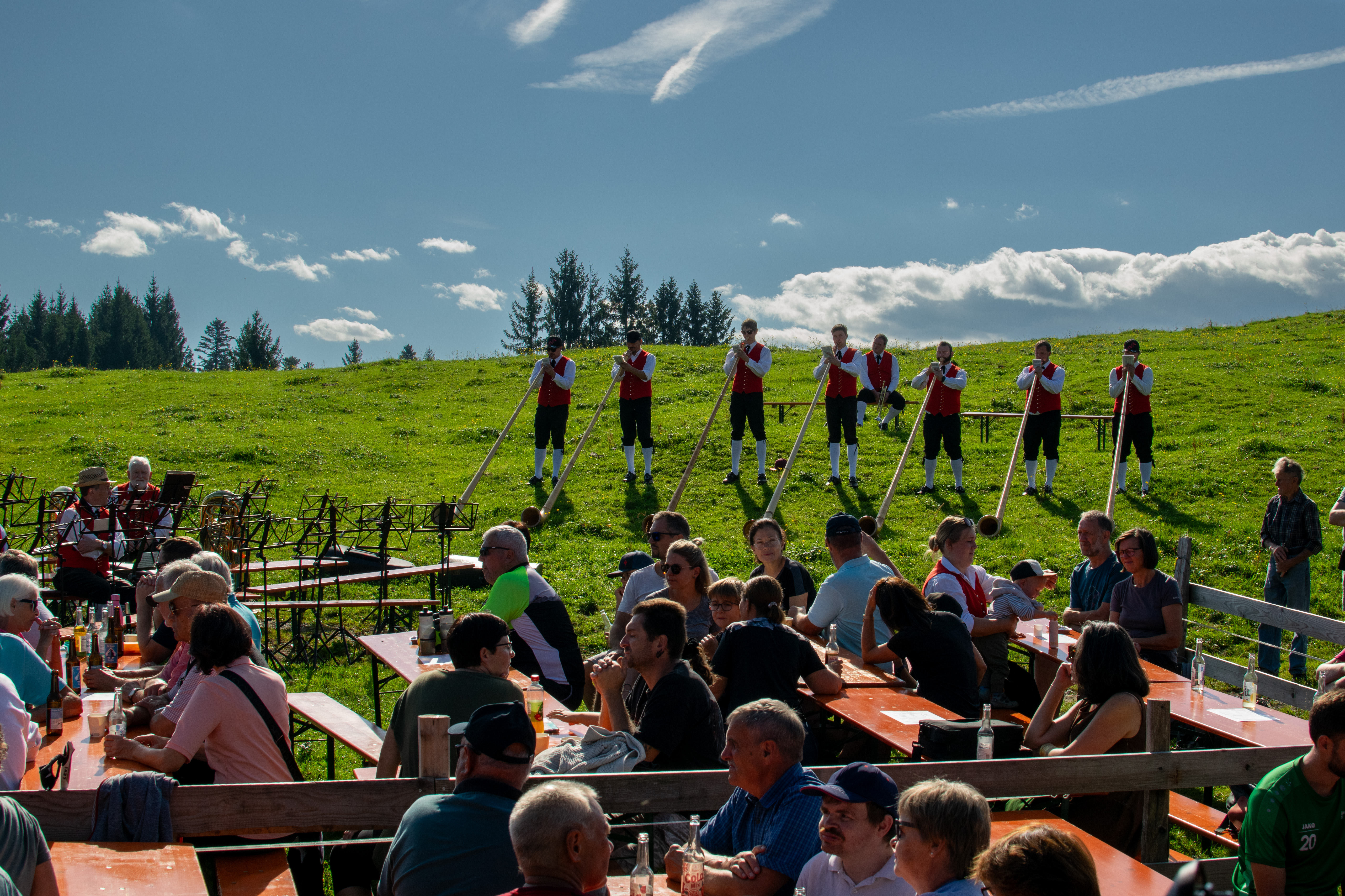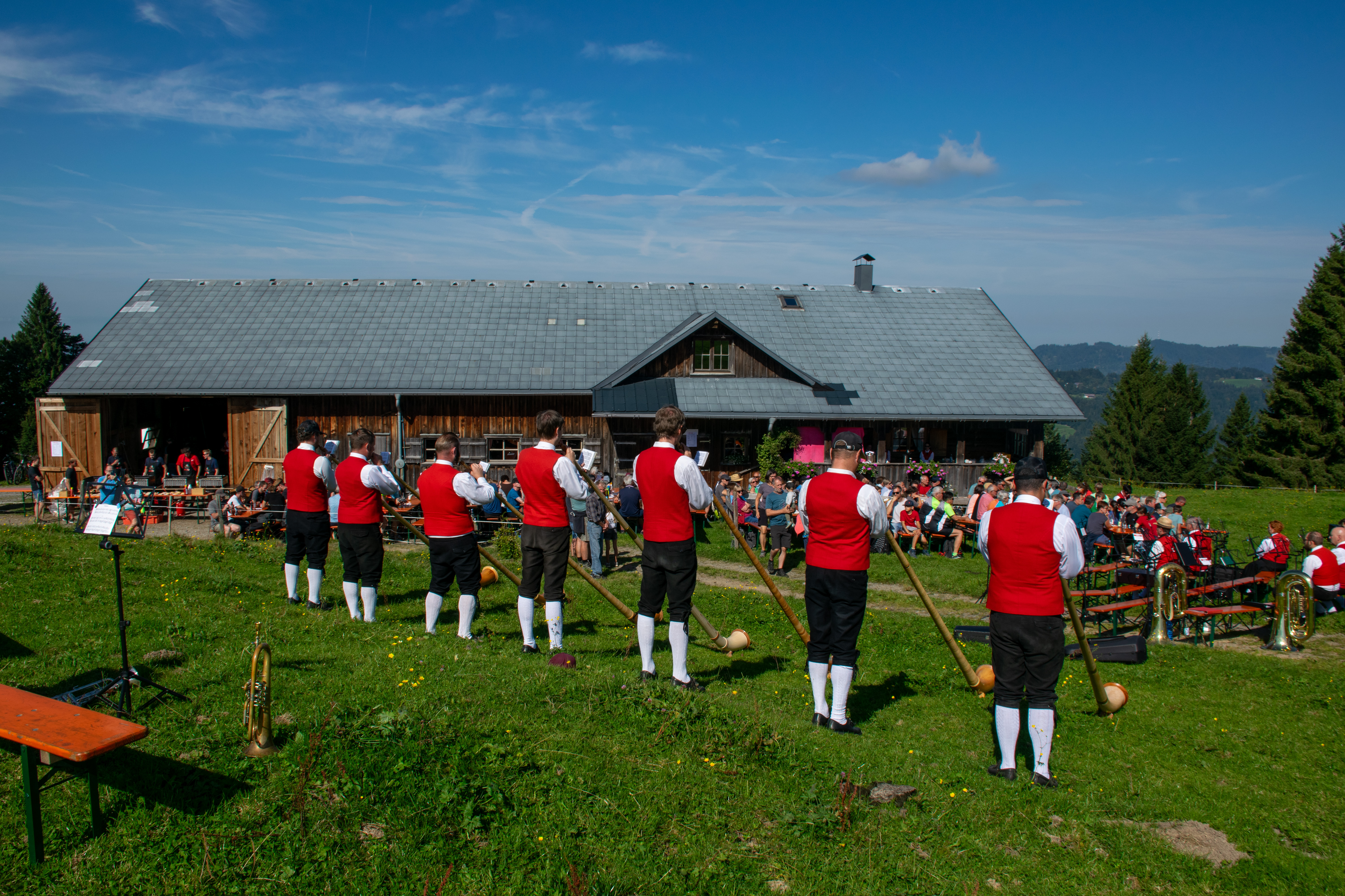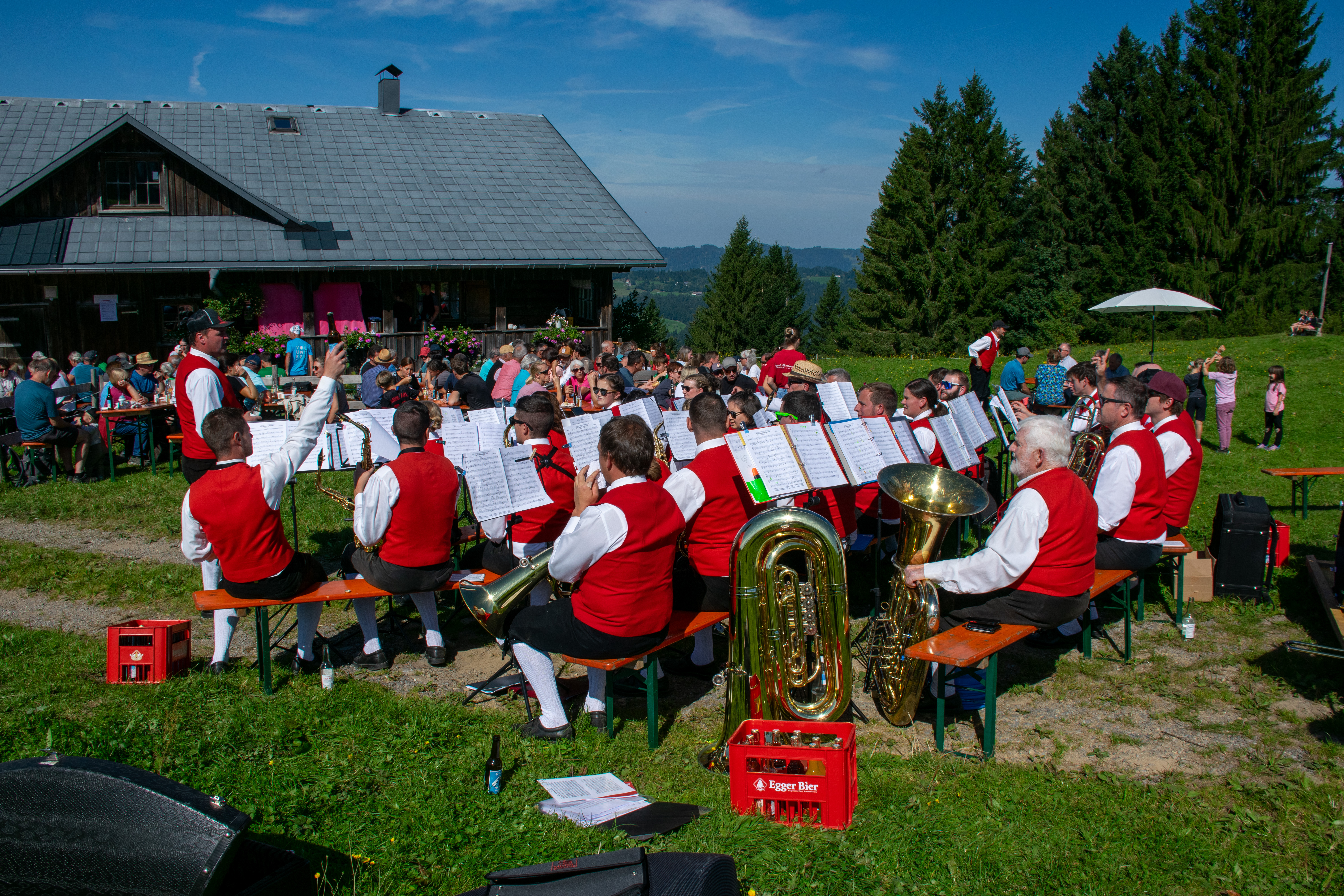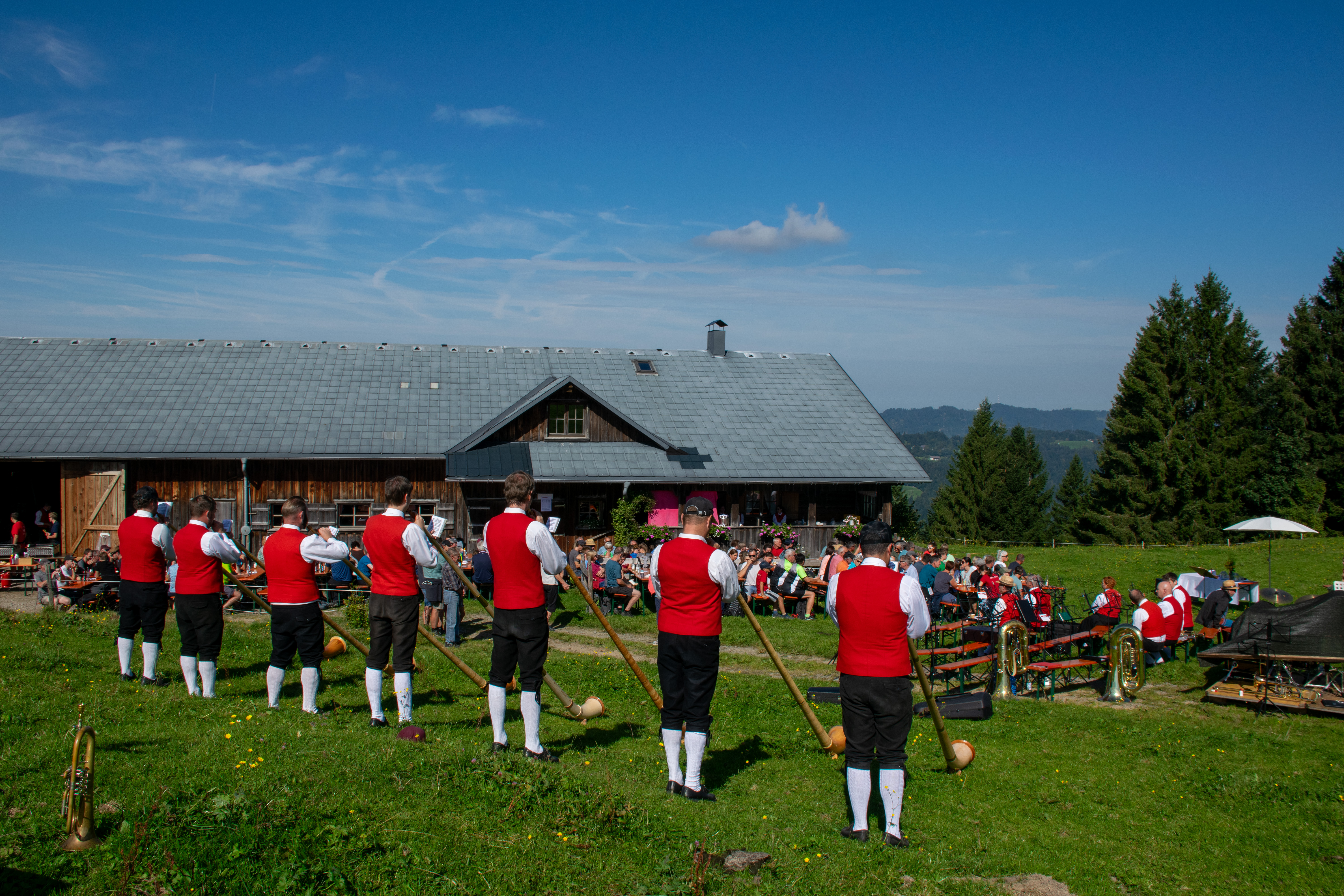 Am Sonntag, den 21.09.2025, durften wir Musikantinnen und Musikanten uns bei herrlichem Herbstwetter über zahlreiche Besucher der alljährlichen Bergmesse auf der Breitentobelalpe freuen. Unser besonderer Dank gebührt der Feuerwehr Alberschwende, die uns in diesem Jahr bei der Bewirtung tatkräftig unterstützt hat.